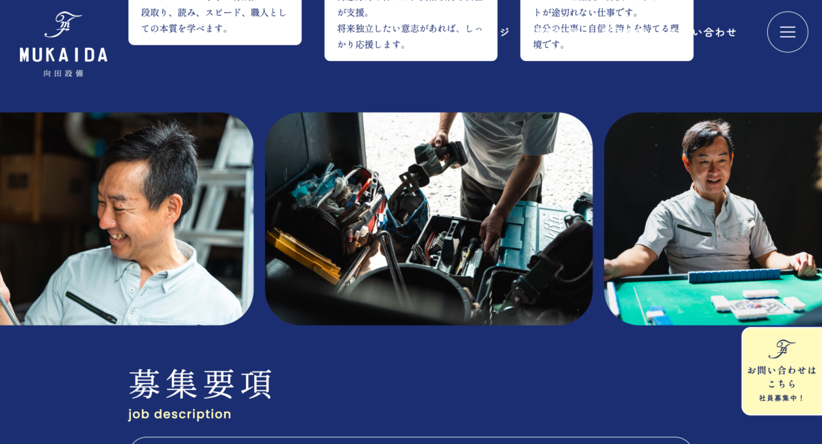 求職者との現場イメージの差をなくすため、親方である向田さんの人柄や考え方が伝わる構成としました。