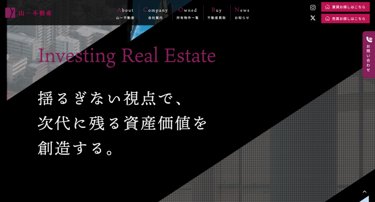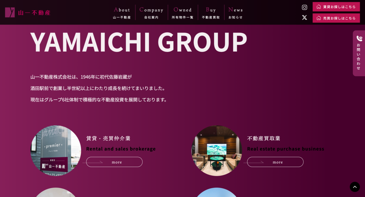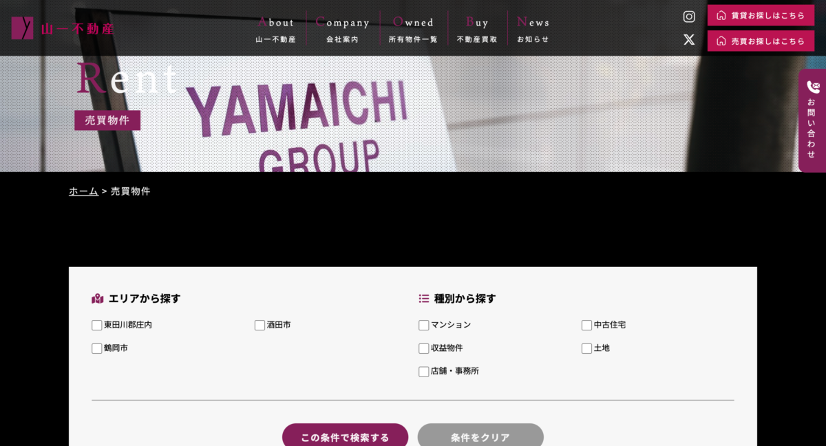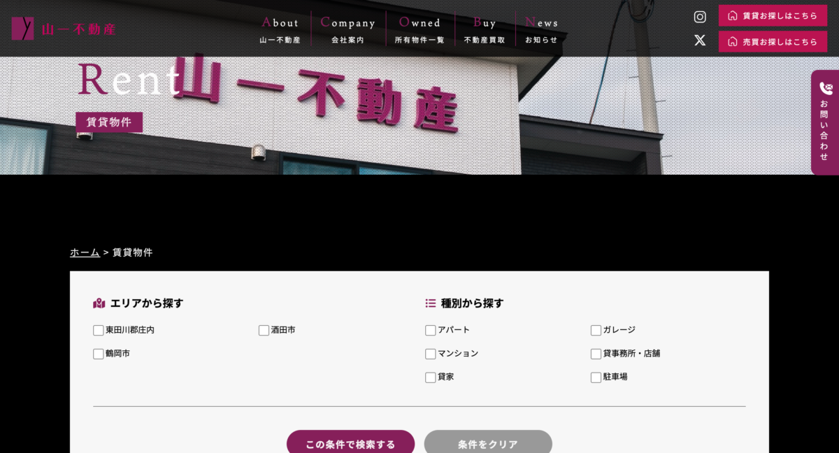 山形県酒田市に本社を構える山一不動産様。地域に根差した事業運営を続けている企業です。長年の実績を背景に、多くの物件を扱っています。今回のリニューアルでは、単なる物件掲載サイトとしての改善だけではなく、企業としての強みを正しく伝えることが重要なテーマとなっていました。