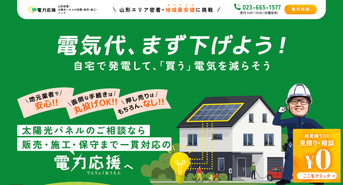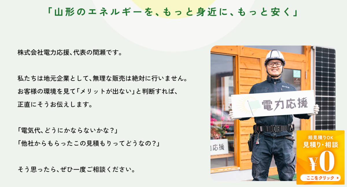 山形市に本社を構える株式会社電力応援様。地域に根差した事業を展開し、その中で太陽光パネル発電導入の支援を行っています。